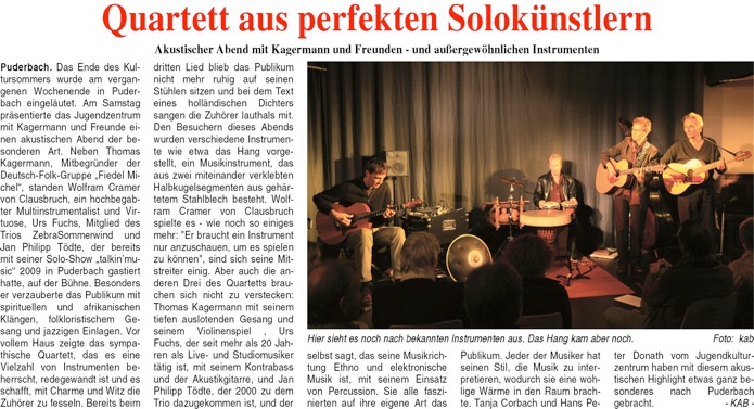 „...variantenreiche Klangvielfalt... die Gäste, die im Takt wippend, sich ganz von der Musik einfangen ließen. Ein Musikgenuss der besonderen Art.
