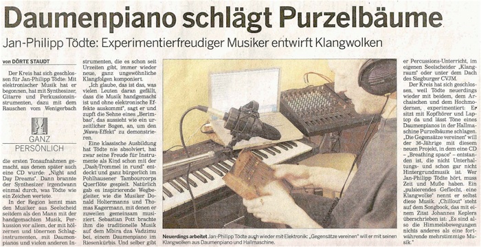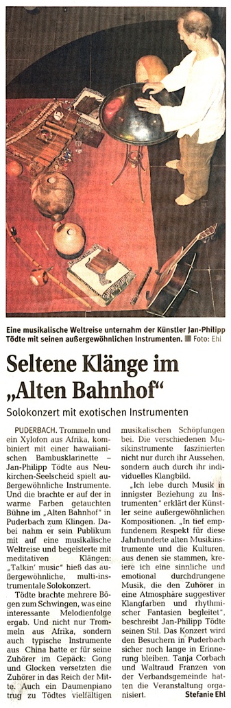 „In der Region kennt man den Musiker...als den Mann mit der handgemachten Musik...der...immer wieder neue, ganz ungewöhnliche Klangfolgen komponiert.“